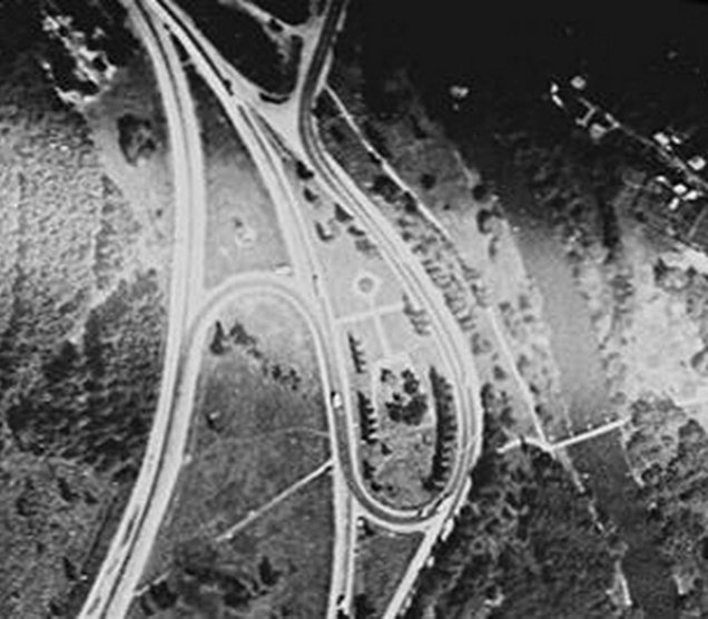 Спутник 1980. Монумент стоял не на месте заправки, а в правой петле.