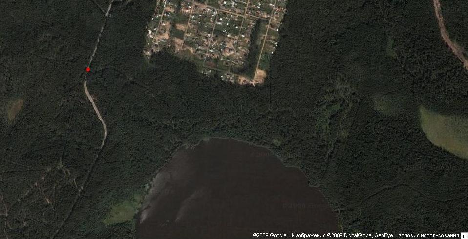 Красная точка - поворот к озеру.