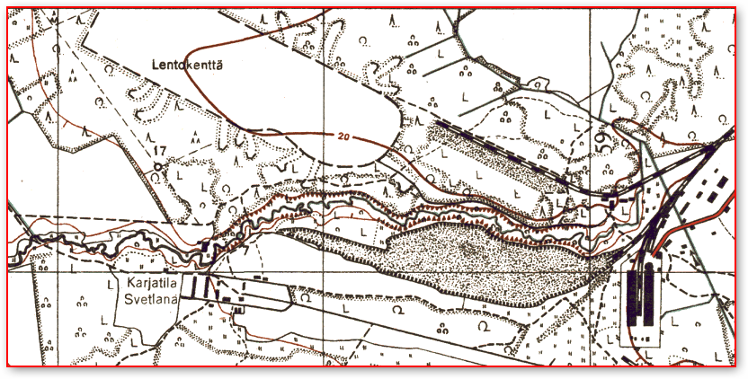 Мне кажется, что Вы ошибаетесь. Ниже выкладываю участок финской карты с аэродромом. Для точного местоположения аэродрома требуется наложение финской и современной карт.