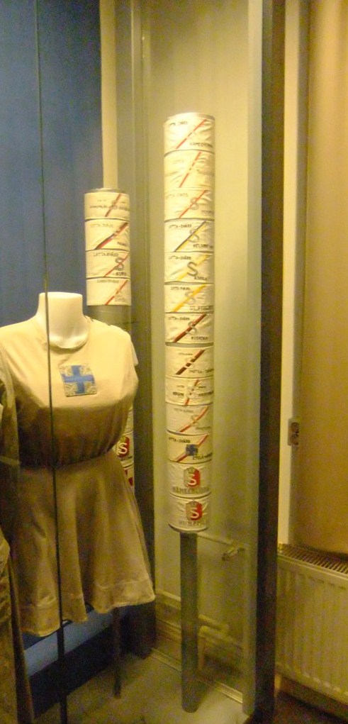 Вообще, лоттам посвящён в музее целый отдел. Забавным показался такой вот экспонат. Рядом с манекеном не туалетная бумага, как вы подумали, а нарукавные повязки различных лотта-подразделений.