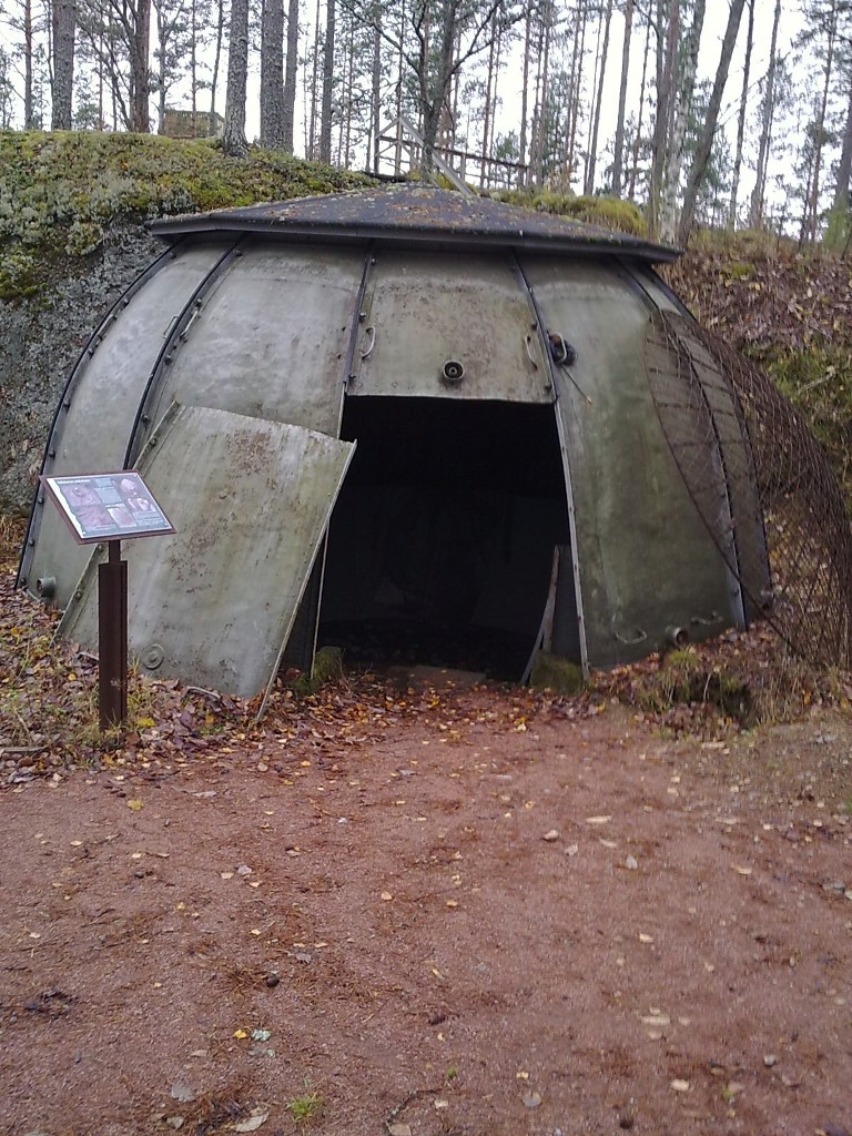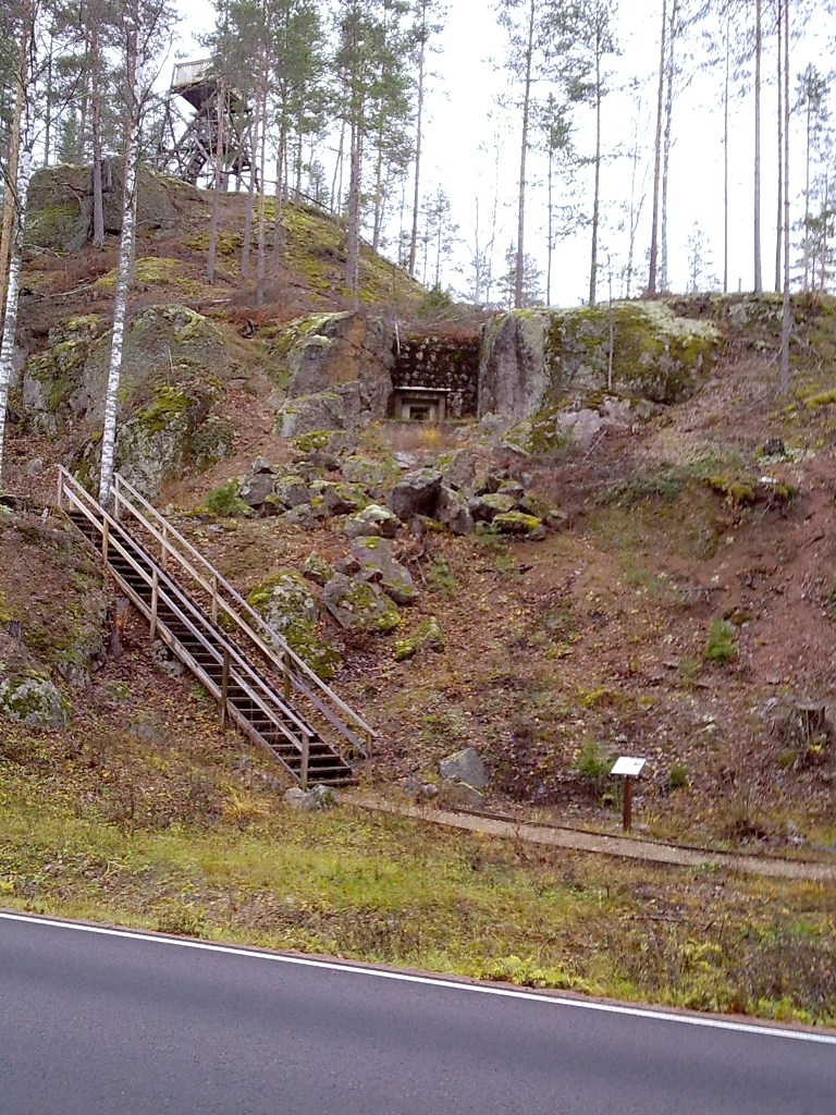 Военно-историческая часть экскурсии завершилась неподалёку от границы, в Миехикяля, где проходит линия Салпа. Посмотрели т.н. "дикий" и музеефицированный участки. За дикий денег не берут. На музейном сейчас - не сезон, то, что положено (в т.ч., например, банкетный зал в одном из убежищ :P ) закрыто на ключ, а за остальное - тоже денег не берут. Понятно, что на музейном уч-ке всё оборудовано указателями, стрелочками, лесенками и смотровыми площадками. А на диком-только таблички с названием объекта и столбики, указывающие общее направление похода для туристов. Чистота же и сохранность сооружений практически одинаковая. Размах и протяженность, конечно, впечатляют, особенно на фоне рельефа местности. В этот день, похоже, мы были там единственными посетителями (и вообще, как говорят, такие достопримечательности посещают в основном "наши люди"). Правда на обратном пути к автобусу навстречу попалось несколько горячих финских парней в камуфляже, с банками пива в руках. Надо понимать, местные фортоведы :green2:
