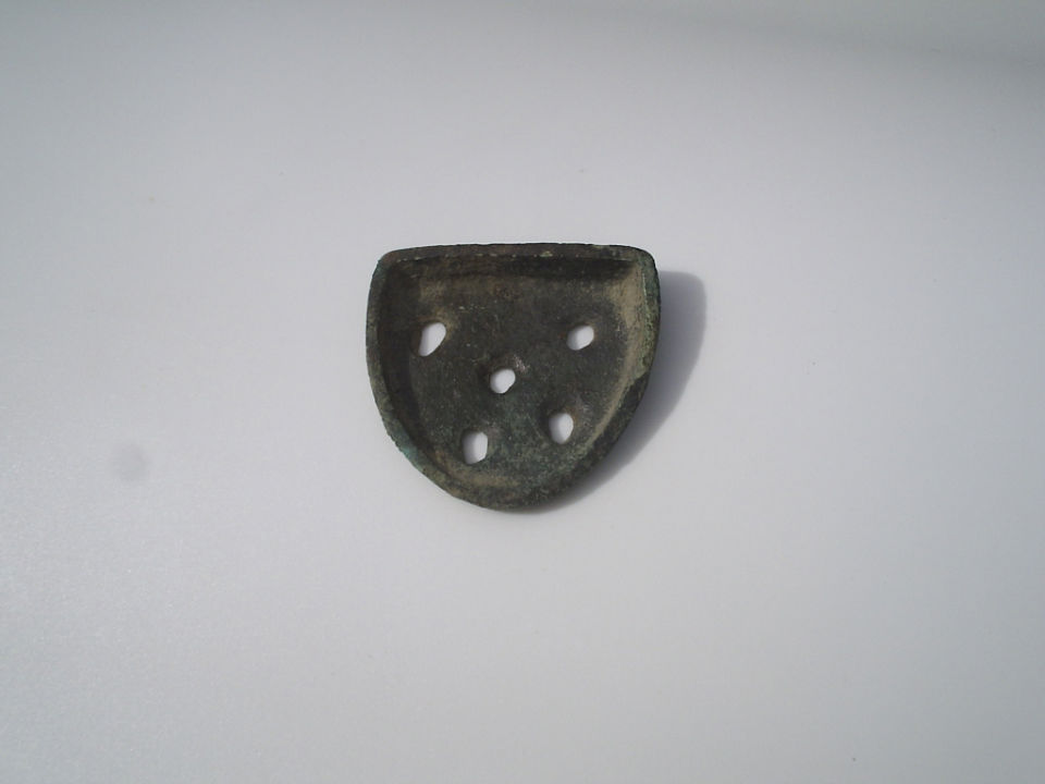 Похоже на самоделку кустарную, отметины с обратной стороны - как будто признак штамповки, как будто этот кругляш - часть чего-то ещё. Дырочка, мне кажется, от коррозии. Там тоже следы "штамповки".