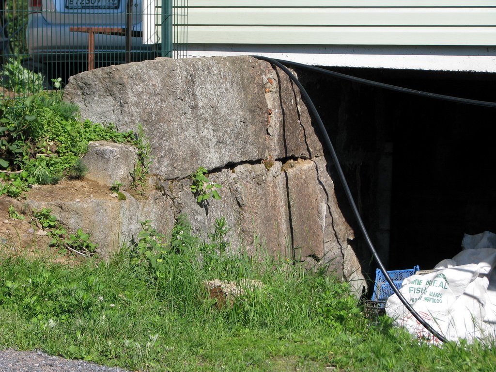 В доме - подземный гараж. Так вот, откосы у гаража сложены из фундаментных гранитных блоков. По словам хозяев, камни - с этого же места.
