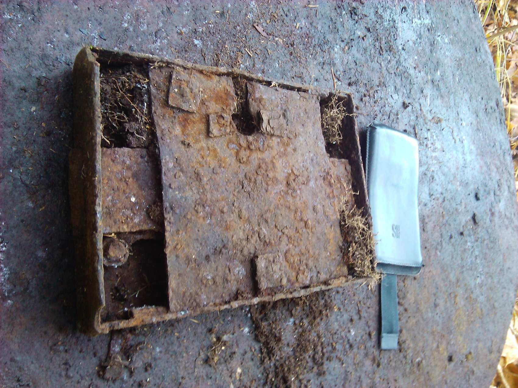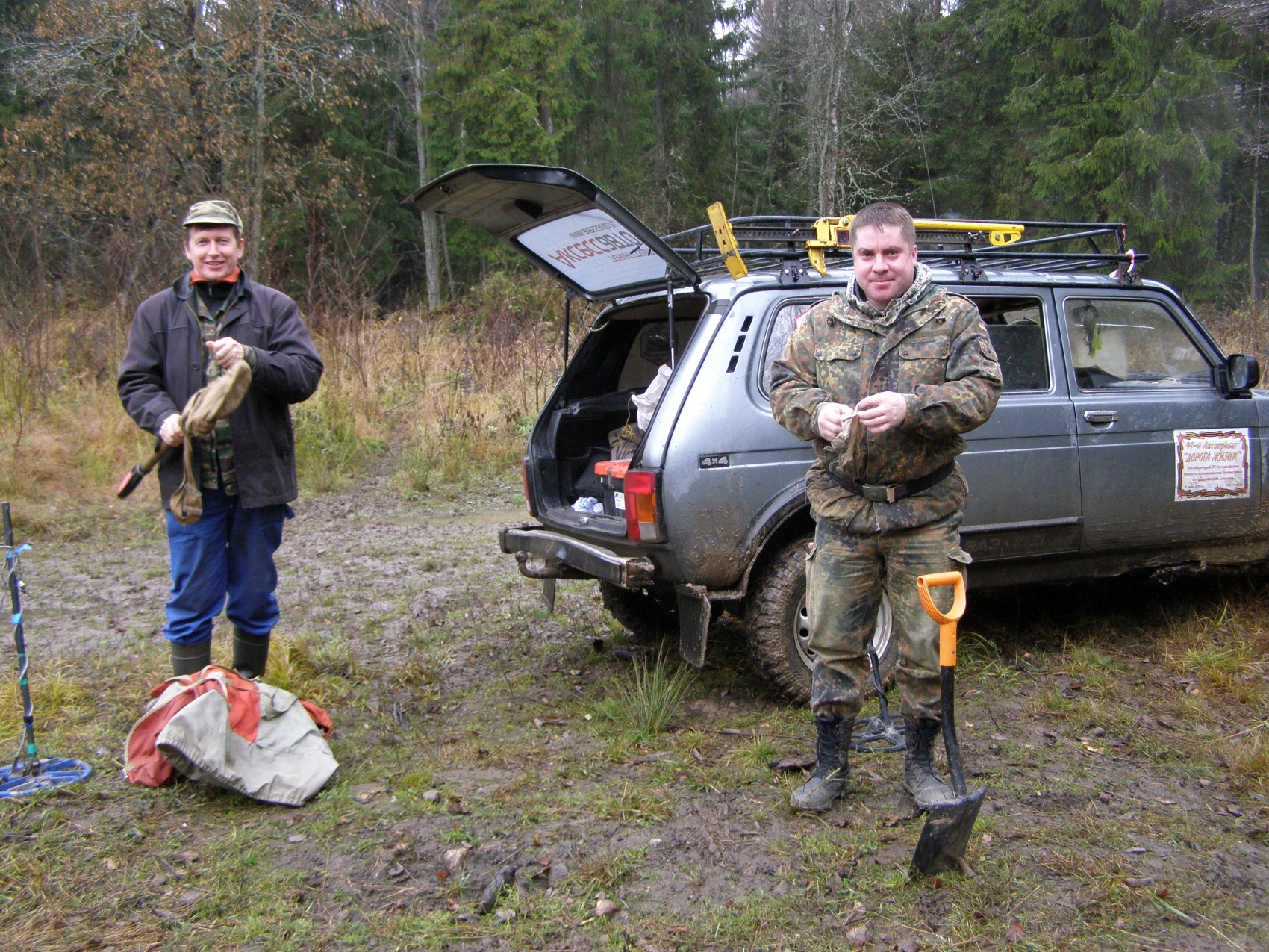 Итак,сезон археологических поисков в этом году вроде как почти завершен.С коллегами Сильвером,Виталием tonteri и Олегом Ермолаевым в конце октября совершили интересную поездку в Термолово на Олеговской "Ниве".Доехали прямо до места-машина перла как БТР!Олег остался в машине а мы пошли исследовать окресности.Пока ходили к Олегу пристал проезжающий мимо егерь на предмет незаконной охоты на зверей.Пришлось ему обьяснять что мы никакие не охотники а честные копатели.Его это очень обрадовало и он живо интересовался-что мы интересного находим и где тут можно откопать кучу кладов.Причем,когда мы отъехали чтобы нас не видно было с дороги,то он все равно нас увидел и пришел смотреть-что мы нашли интересного.Вобщем-то находок в Термолово немного,но по своему они интересны.