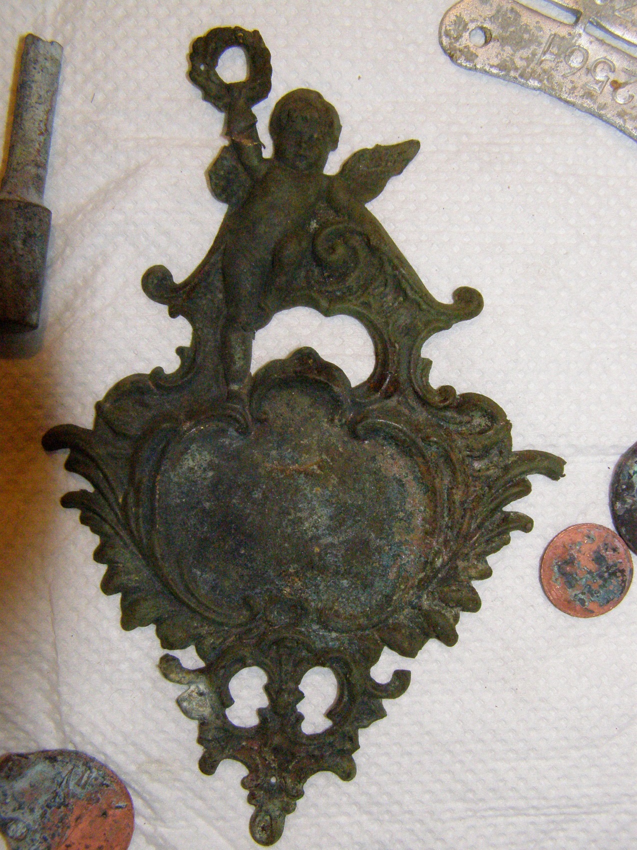 И пожалуй самая интересная экспедиция была последняя-в ноябре.Пошли с Сильвером поискать в районе креста и родника-не доезжая до моста через Сестру.Случайно наткнулись на остатки фундамента возле позиций.Потом-когда стал определять-что за фундамент,выяснил,что это был самый ближний к Сестре дом от Каллелово.Причем на картах 39-40 года его уже нет.Судя по находкам,дом был сожжен и разрушен после революции.Может был дом офицера таможенной стражи?Исследовали фундамент очень тщательно,в течении 5 часов.Между делом откопали ведра два осколков фарфоровой посуды,причем в основном Кузнецовского фарфора.Монеты-финско-николаевские,5 и 10 пенни.и несколько копеечных-но уже чисто рассейских.Все конца 19 века.И несколько интересных вещей.