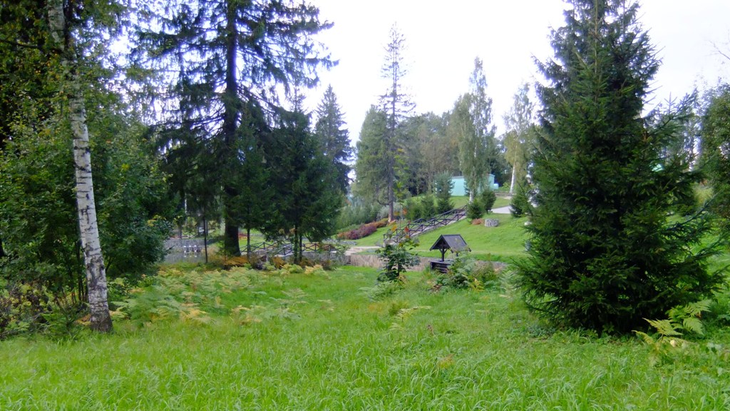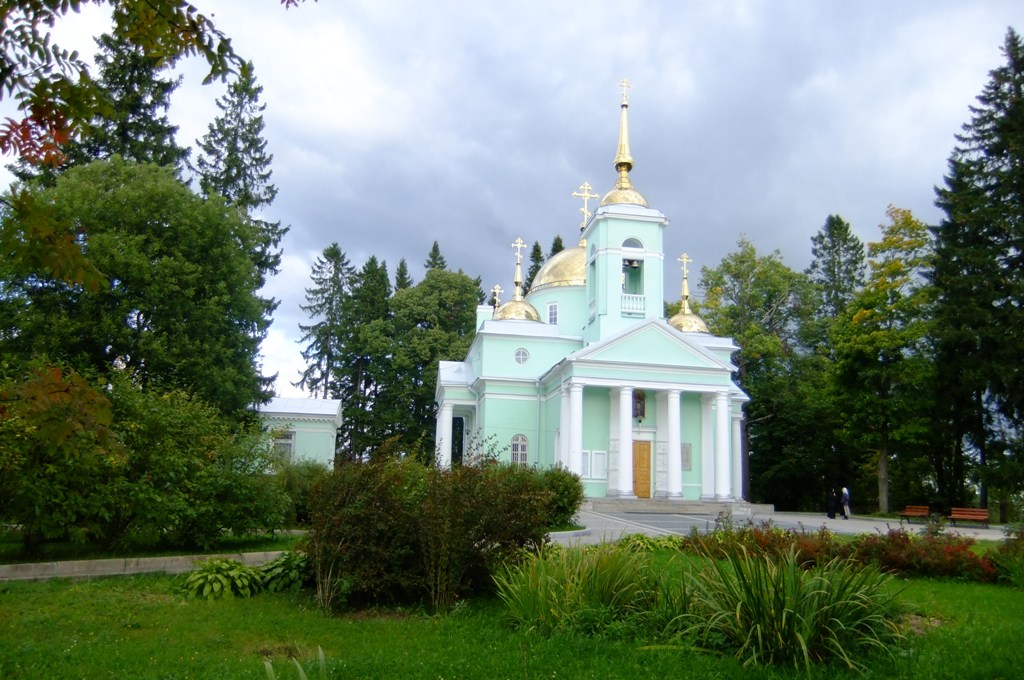 Однако всё же захотелось взглянуть на церковь собственными глазами, тем более, что это совсем недалеко. История церкви и усадьбы Шуваловых описана более-менее подробно в разных источниках. Подчеркну лишь, что даже по сегодняшнему виду нетрудно понять, какой это в своё время был ансамбль: парк с вековыми елями, лиственницами и дубами, озеро, усадьба и как доминанта - церковь. Сейчас территорию стараются привести в порядок. Собственно, на той части, которая занята подворьем Иоанновского женского монастыря, порядок, понятно, образцовый. Но и общедоступная часть парка - по сути лес - тоже обнесена новой оградой, установлены урны, и там в общем-то чисто. Запущено, но не засрано во всяком случае.