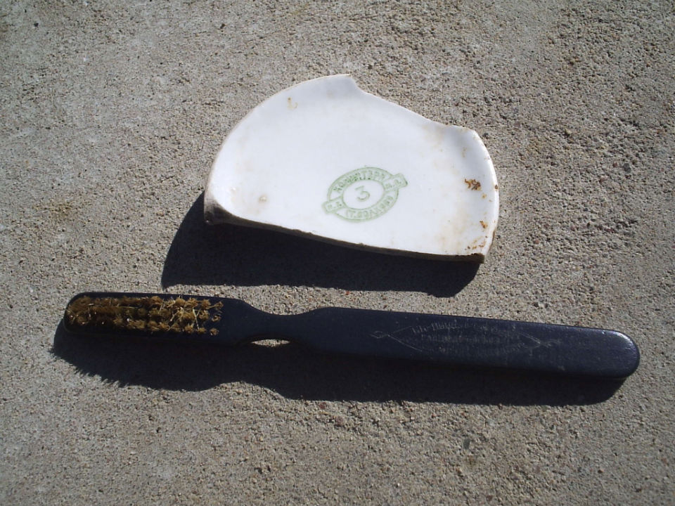 На солдатской,, помойке,,попалась зубная щетка и осколок от посуды.