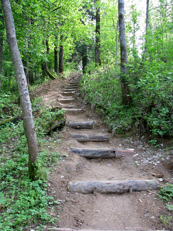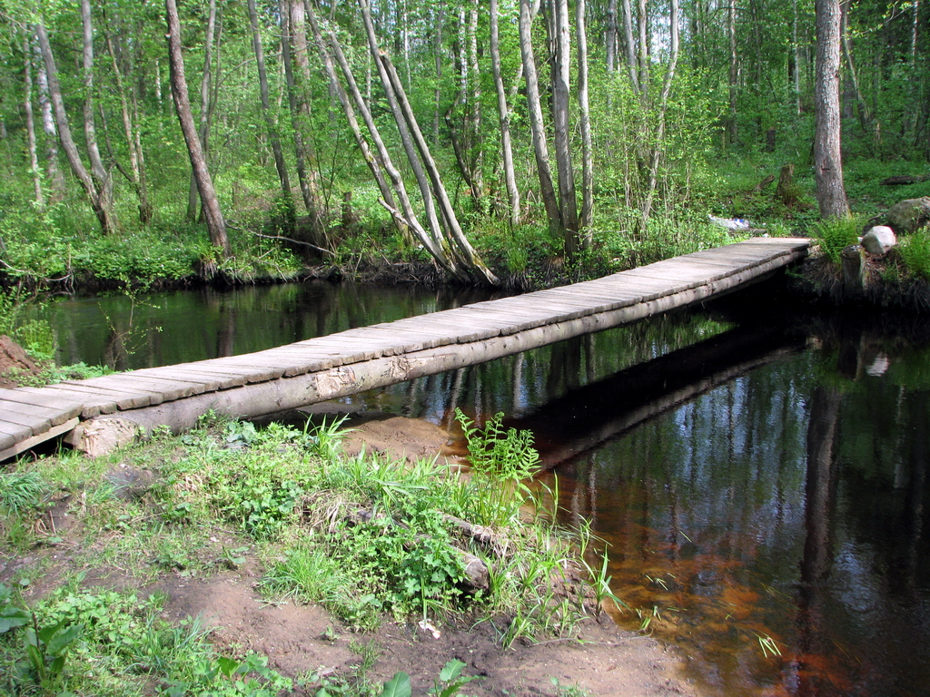 Берег и насыпь с обоих берегов у моста через речку очень высокие. Со стороны Сертолово насыпь изрядно исхожена, правда у газопровода она превращается уже просто в топкую тропинку. Очень живописен пешеходный мостик, перекинутый через речку, и деревянные ступеньки, заботливо облегчающие подъём на насыпь.