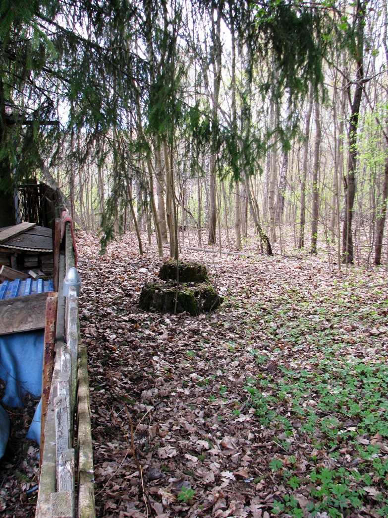 На участке, соседнем с лиственницей, обнаружилась замечательная старушка лет 85. Она напрочь отмела версию, что лиственница довоенная, потому как она помнит, как её посадил сосед. "Вот видите она раздваивается вверху? Это её сосед топором разрубил". Старушка эта, вероятней всего, Лидия Александровна Зайцева - героиня статьи краеведа-эксперта про поиск утерянной кирхи. "Тут Миша ходил" - сказала она, показывая на два старых пня. Это оказались пни от тех самых тополей, от которых, как считает краевед-эксперт, сделаны те самые хрестоматийные снимки с финскими солдатами и кирхой.