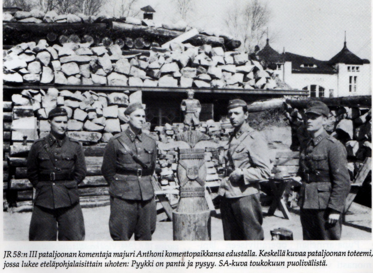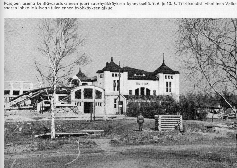 "Полевое укрепление у станции Райяйоки как раз накануне большого наступления 9-10 июня 1944. Орудие направлено в сторону противника в секторе Valkeasaari..." (что-то никакого орудия на фото я не вижу, м.б. криво перевел)