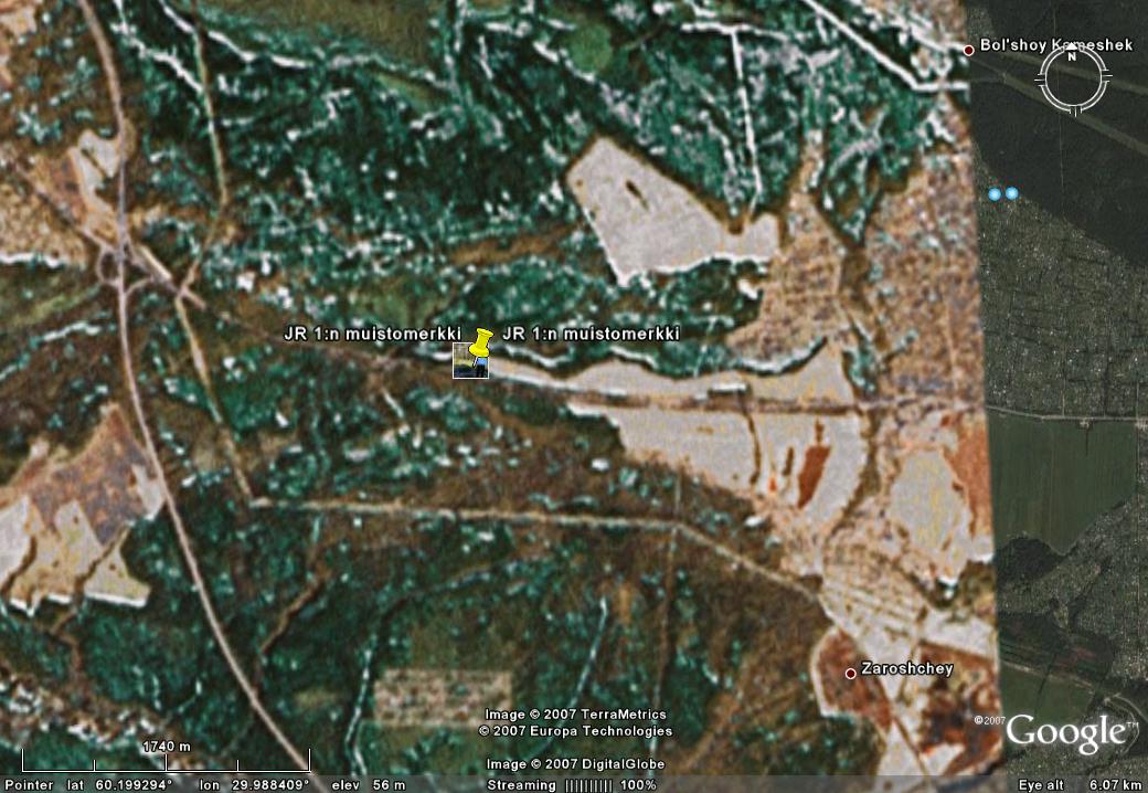 По-моему, достаточно четкие указания: от Пасторского ручья (будем считать от моста) один километр на запад по Выборгскому шоссе, там 75-100 метров по дороге направо. На какой-то карте как раз видел в этом месте новую застройку ("депо"). Я не очень хорошо знаю те места, но по этим инструкциям памятник должен найтись без труда, я думаю.Это примерно 75-100 метров от Выборгского шоссе, с северной стороны, 1 км от Пастринои (имеется в виду здешний ручей, но финской карты у меня нет) на запад, в сторону р. Сестры, там поле, переходящее в лес, это находится на дороге, ведущей в новое депо, 10 метров до забора депо