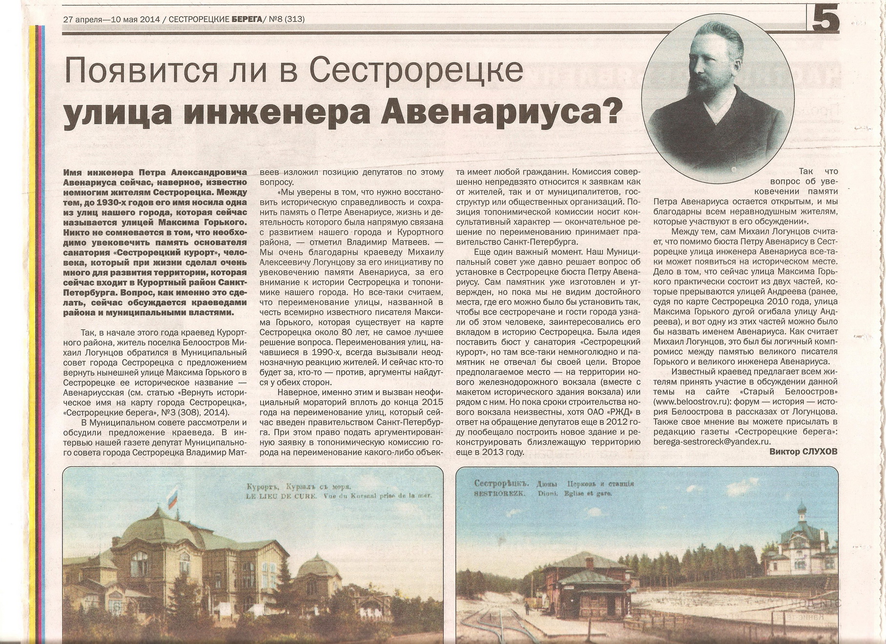 со статьей Виктора Слухова "Появится ли в Сестрорецке улица инженера Авенариуса?"
