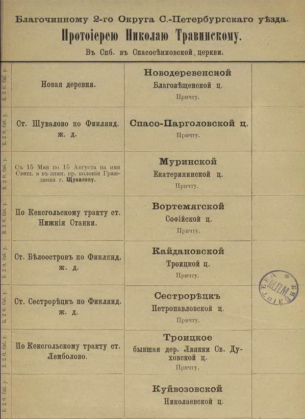 LYNX писал(а):Книга называется "Список церквей СПб епархии с указанием их почтовых трактов" за 1894 год