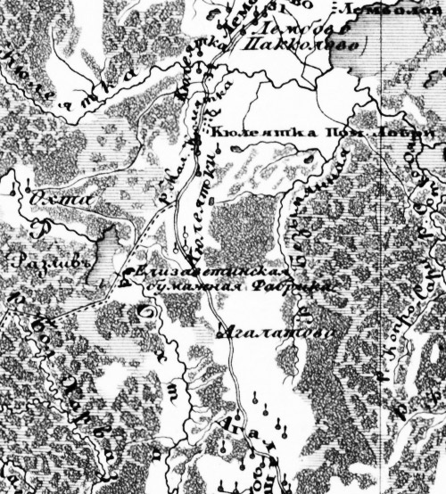 В переписи 1836г. Все очень хорошо расшифровывается. А если учесть, что бумажная фабрика была построена на запруде в Кюлиятке, то и третья появляется и аккурат по дороге на Оту и Термолово.raevsku писал(а):Андрей Р, данные списки еще больше запутывают ситуацию с Кюлеяткой. ...