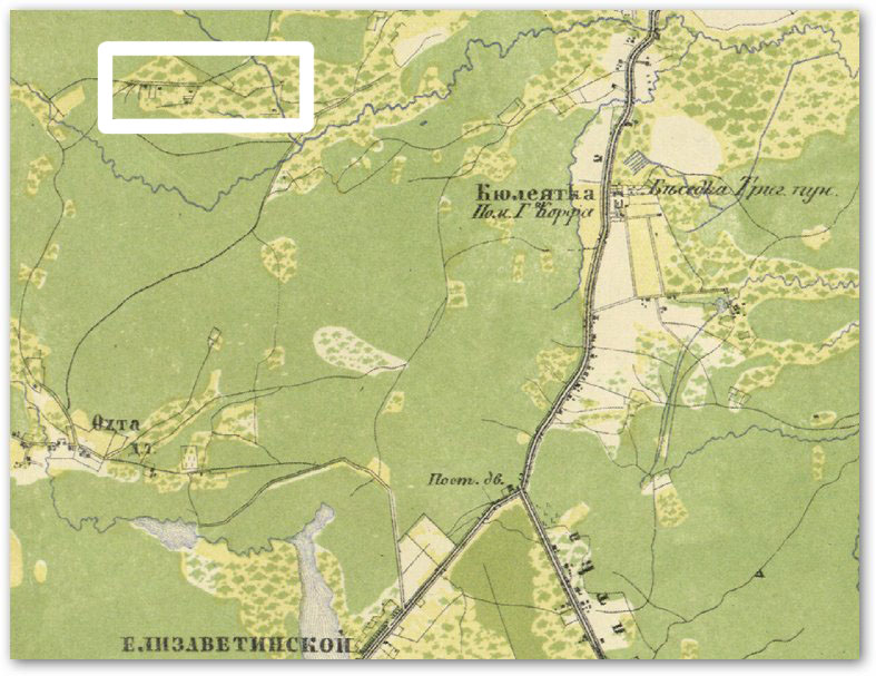 Между нами... На цветной карте Шуберта присутствует аж три запруды - между Кексгольмским трактом и дор. на Елизаветинку, у дор. на Елизаветинку (ныне Елизаветинское оз.) и третья - несколько в стороне от дор. на Термолово. А вот третьей Кюлеятки по дор. на Термолово на картах Шуберта я не вижу.