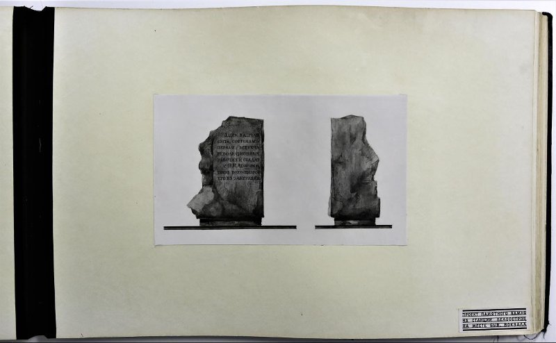Лист «Проект памятного камня на станции Белоостров, на месте быв. вокзала». Из альбома «Проектные предложения по увековечиванию памятных мест В. И. Ленина». 1960 г.