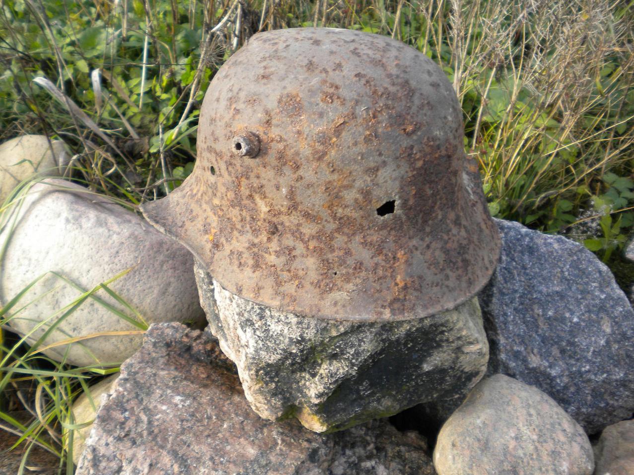 Вот все что удалось найти на месте предполагаемого штаба 7 пехотного полка Финской армии в районе Термолово.Останки шлема М-18...Поиск невозможен по причине килограммов современных осколков на 1 кв.м.