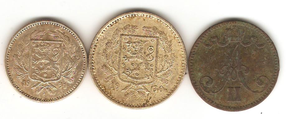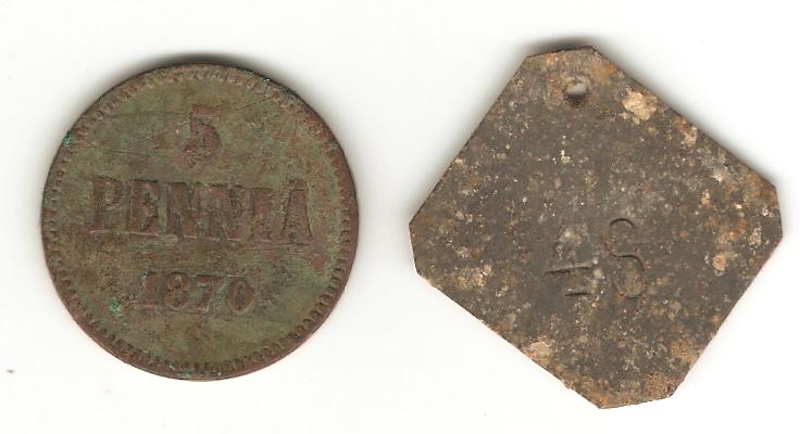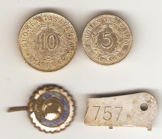 - Финские монеты,кокарда рядового состава,кусочек от идентификационного жетона.