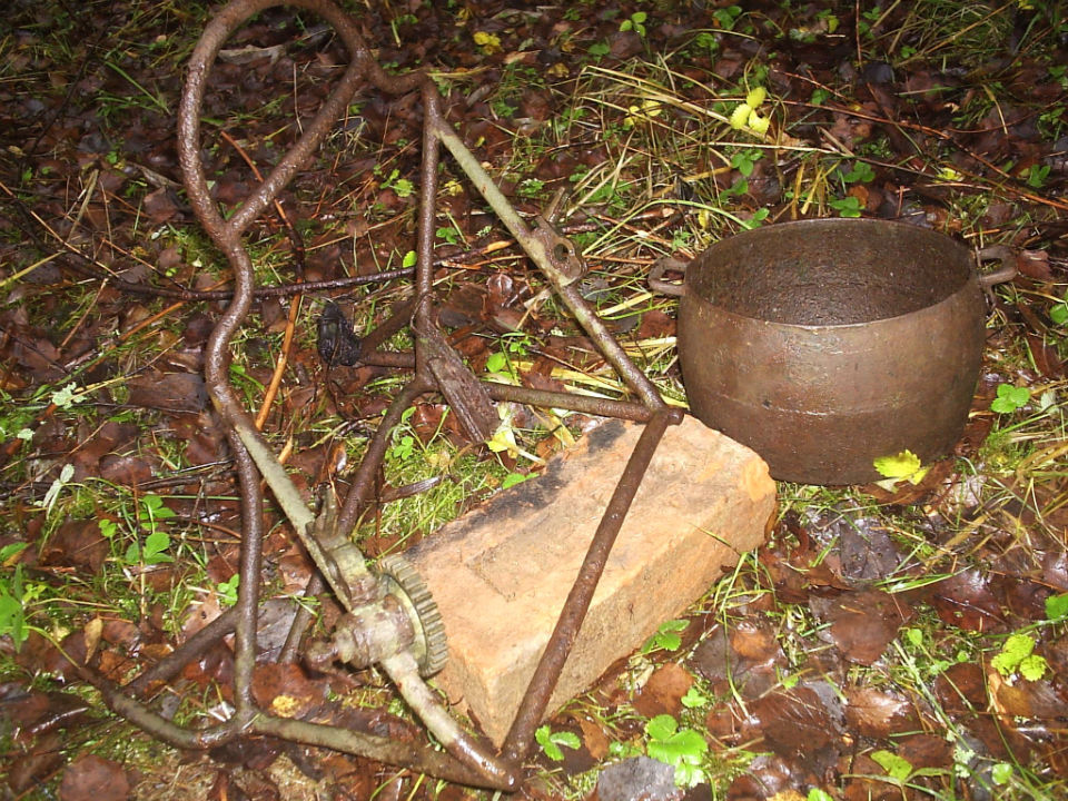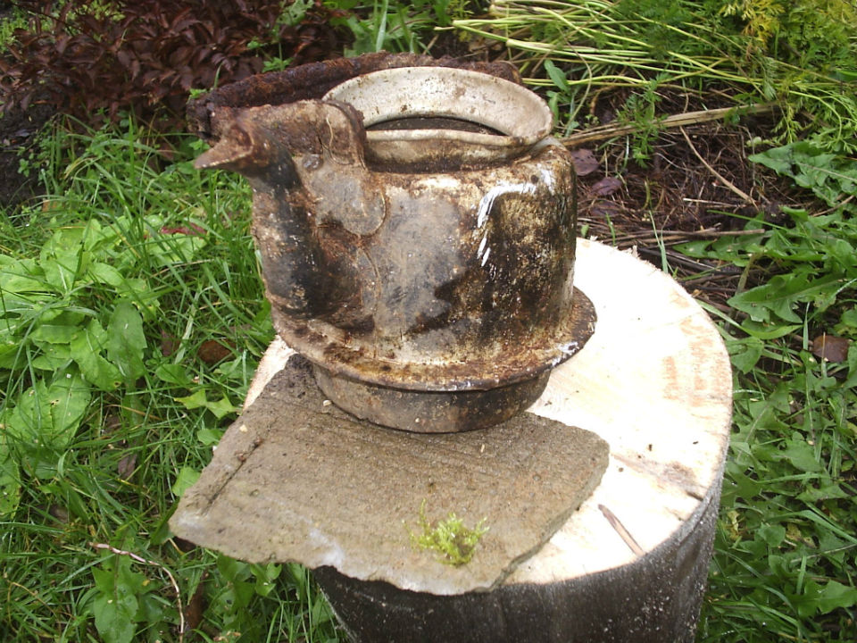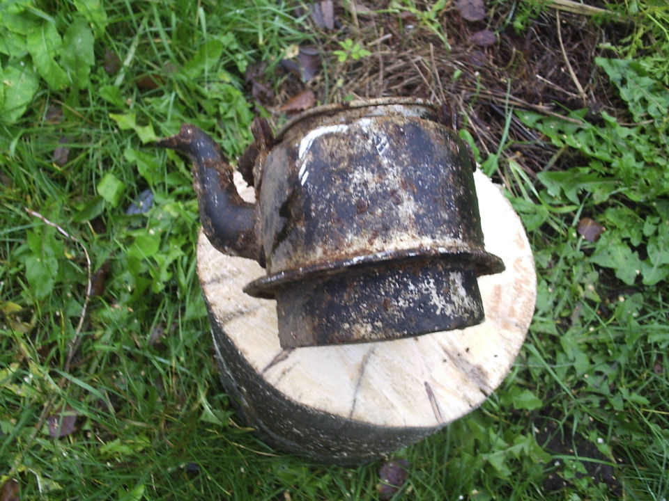 Вот такой небольшой чайничек с финского блиндажа.Интересная форма с каемкой видимо под конфорку(кольцо) чугунного настила или для примуса?Видимо есть какое-то удобство в такой форме.