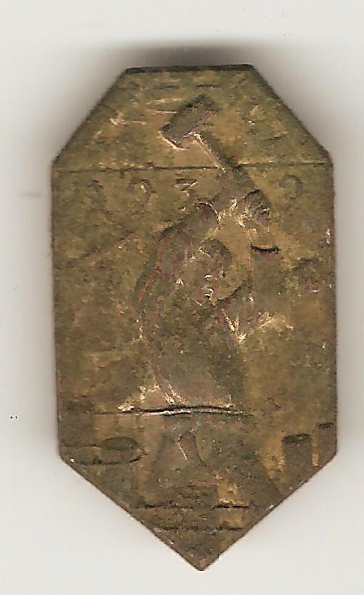 Значок - булавка строителя ЛМ. Строитель мог дополнительно пожертвовать малую сумму, и купить такую булавку. Было несколько типов за разные малые суммы, от 5 до 15 марок, если правильно помню.
