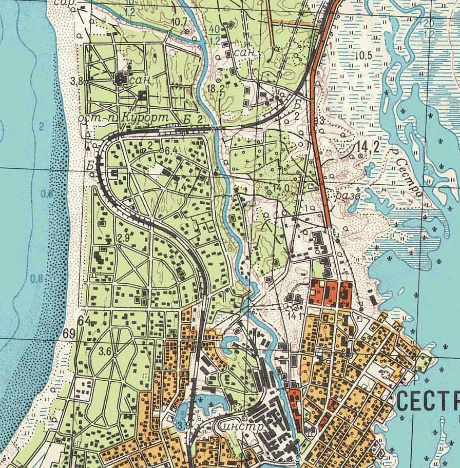 Попытался найти карты (планы) Сестрорецка, которые могли бы ответить на этот вопрос.