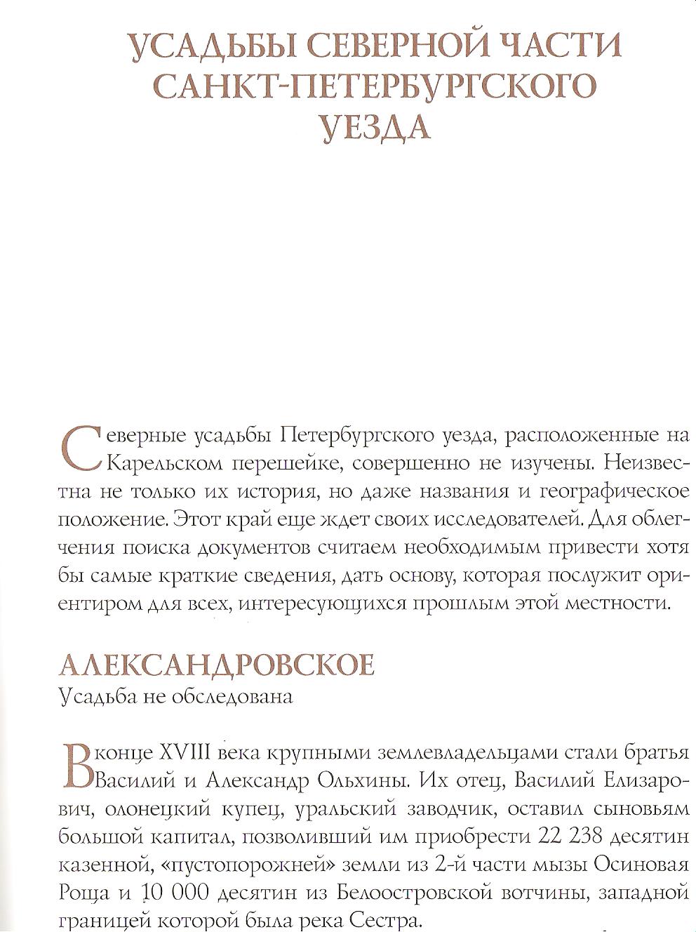 Ниже я привожу сканированную страницу 219 в начале главы "усадьбы северной части СПб уезда" на которой авторы предупреждают читателя, что тема совершенно не изучена, но тем не менее делают попытку рассказать историю этого края.