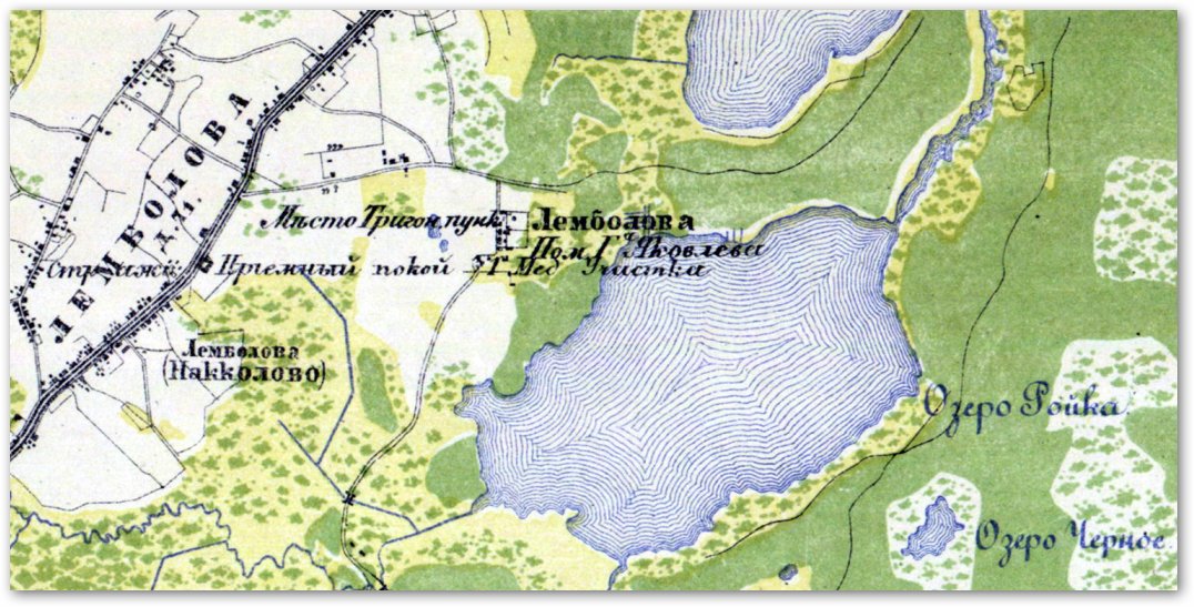 1. Усадьбу, которую купил Лобри они помещают между Лемболовским оз и оз.Ройка. И тут пишут, что в этой ВОТЧИНЕ была открыта почтовая станция на Кексгольмском тракте. Предположим, что почтовая станция была открыта не у усадьбы, а на обширных землях вледельца. Но усадьба у Ройки не обозначена ни на одной карте и книге (хотя фактически там есть нечто как минимум довоенное).