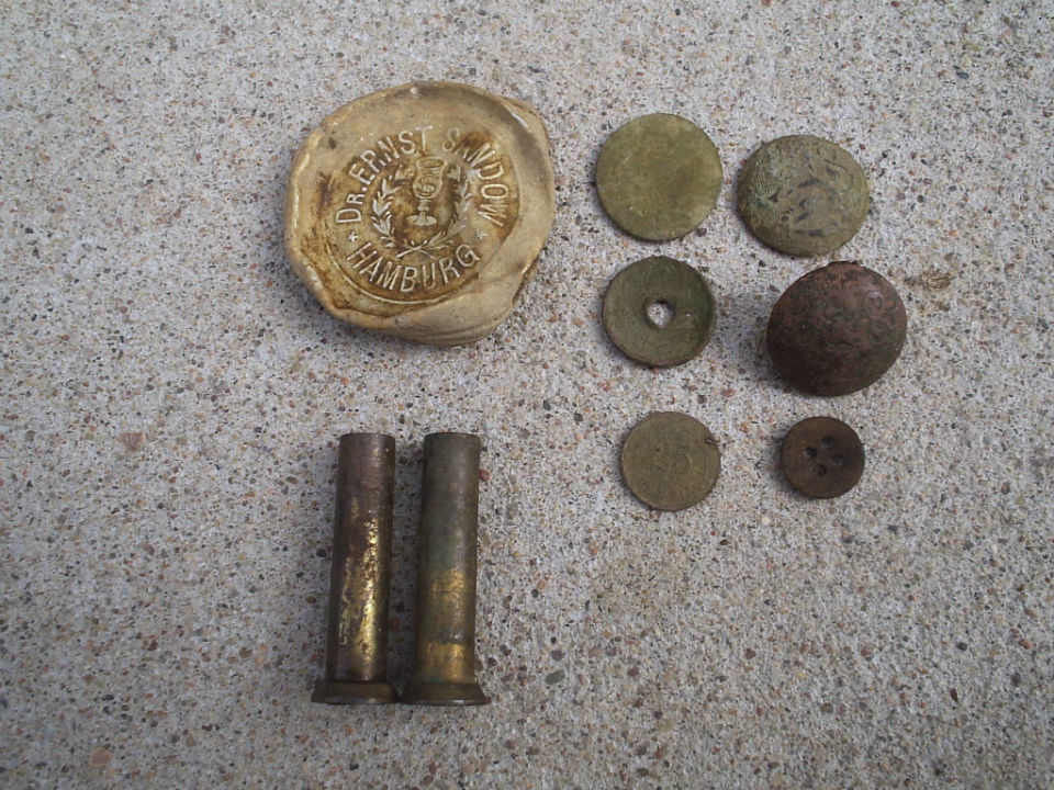 - Пуговицы и монеты в плохом сохране.Одну марку похоже расплющили чем-то.Вид как из под колеса ж/д вагона.