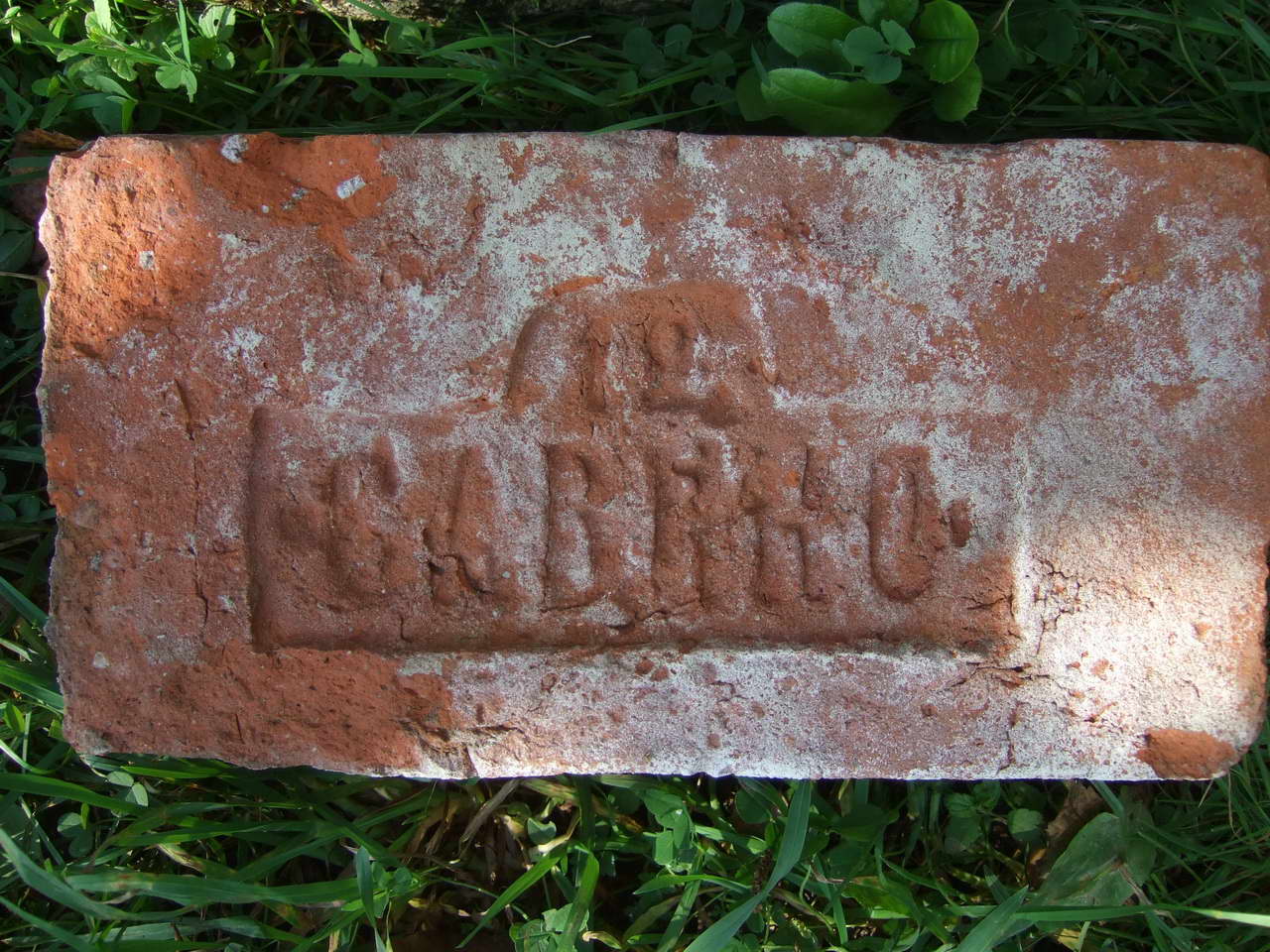 С.Н.Р. - кирпич завода С.Растеряева. Опять правобережье, село Щербинка Колтушской волости