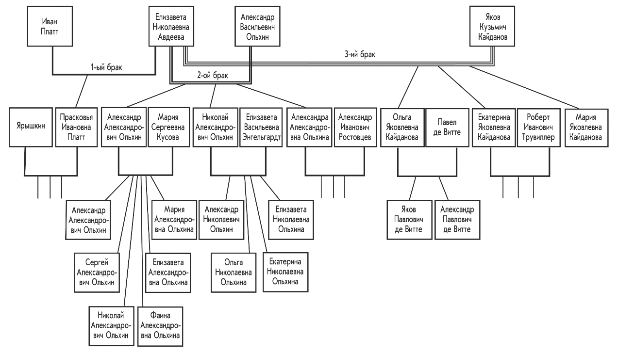 "Ольга Яковлевна (урожденная Кайданова) вышла замуж с приданым за генерал- майора Павла де Витте, родила двух детей − Якова и Александра Павловичей де Витте."