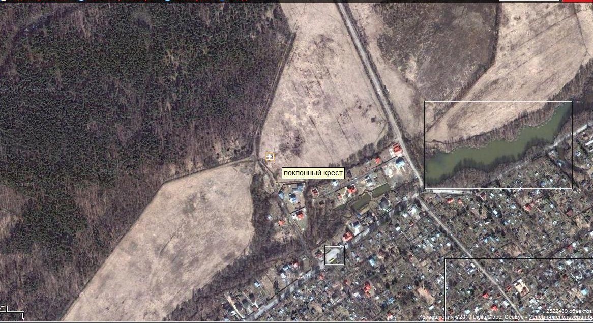 Если не изменяет память, то на углу рощи, примерно на 21 час. Пообщаюсь с братом, мы были вместе когда видели плиту. Может он чего вспомнит, он старше меня на 17 лет.Буквоед писал(а):Вот на этом снимке в центре крест на месте б. кайдановской церкви. От него ~ на 17 час. - квадратик на месте автобусного кольца в Александровке. Видно хорошо Заводское озеро.nstalker68 писал(а):Если бы знал как это делается, то показал бы.