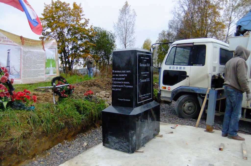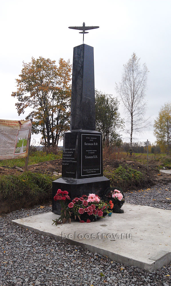 Сегодня с пятницу 5.10.2012 г. Произведена установка Стеллы с Историческим Самолетиком ,практически на том же месте где он возвышался над Выборгским шоссе в течении многих десятилетий.....Вечная Память Героям -штурмовика ИЛ-2 Балакан В.Ф. и Темнову Б. И. С уважением Пучков С.В.и вся иннициативная команда