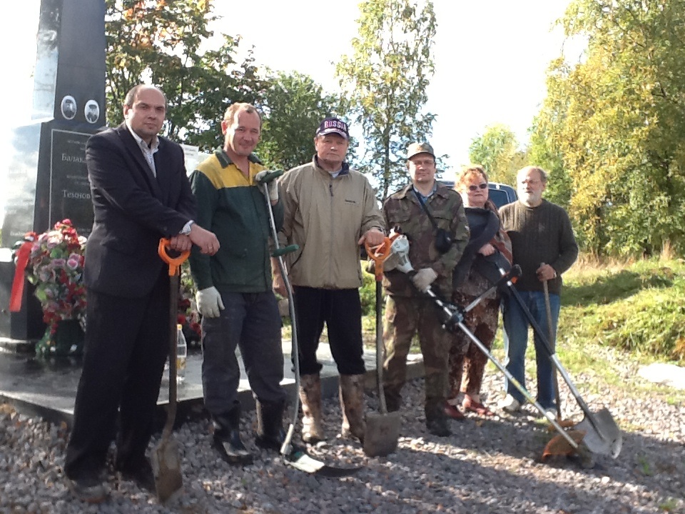 Субботник прошел по плану. Все пункты по работе выполняли: подпорная стенка доработана, камни Олег привез на своей Ниве в багажнике, скосили вокруг всю траву триммером и косой, таблички со всех столбов отодрали - работал Рамазан бригадир автобусников, памятник намыли, вокруг из щебенки выдернули сорняки. Всем участникам огромная благодарность