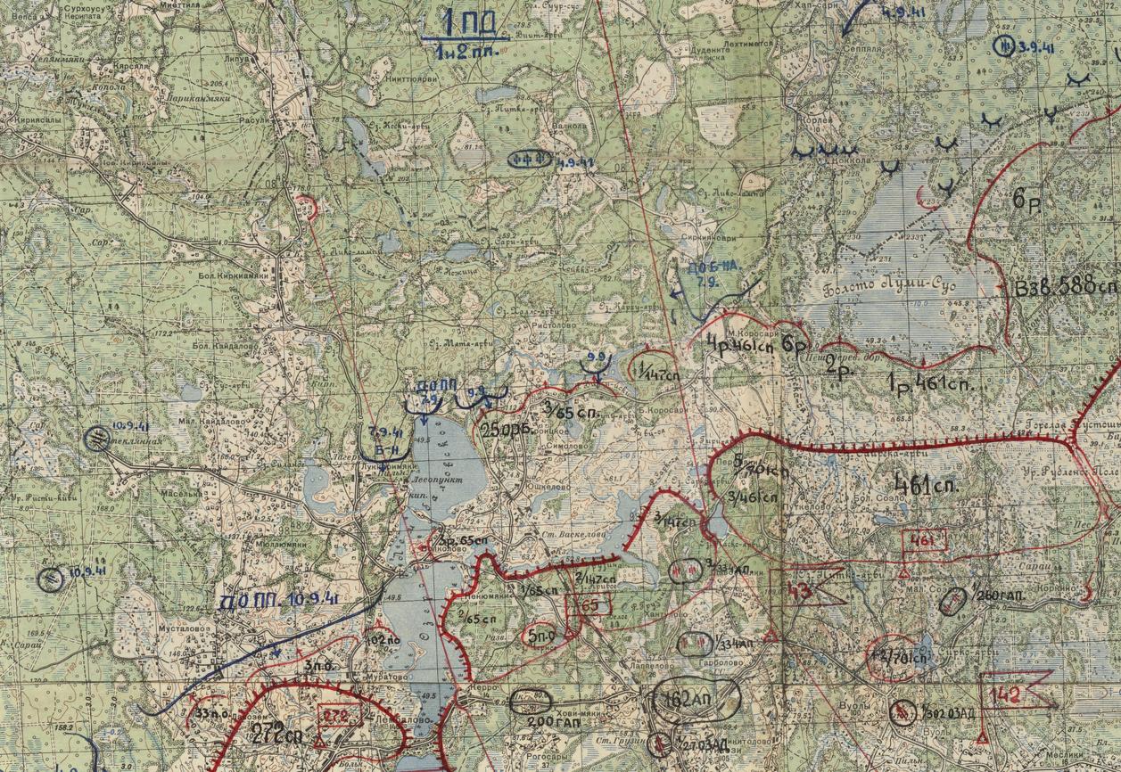 Вот получше карта. Здесь положение на 1 сентября 1941 года. Линия фронта на 17-18? сентября, когда здесь мог быть Маннергейм, не изменилась