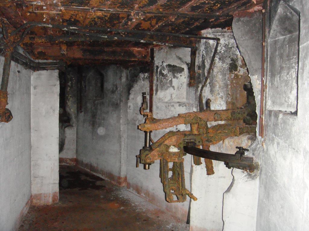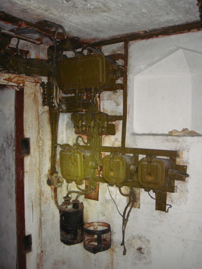 Хозяйка участка вполне адекватная леди.Рассказала,что когда участок с ДОТ достался им в собственность (они были одни из первых заселившихся),там был гадюшник и общественный туалет.2 из 3-х станков демонированы уже были.Маска Юшиновская была на месте.Но её пришлось демонировать под трубу(.Вцелом ДОТ в неплохом состоянии.На нижнем этаже сохранилась почти вся электрика и ФВУ.