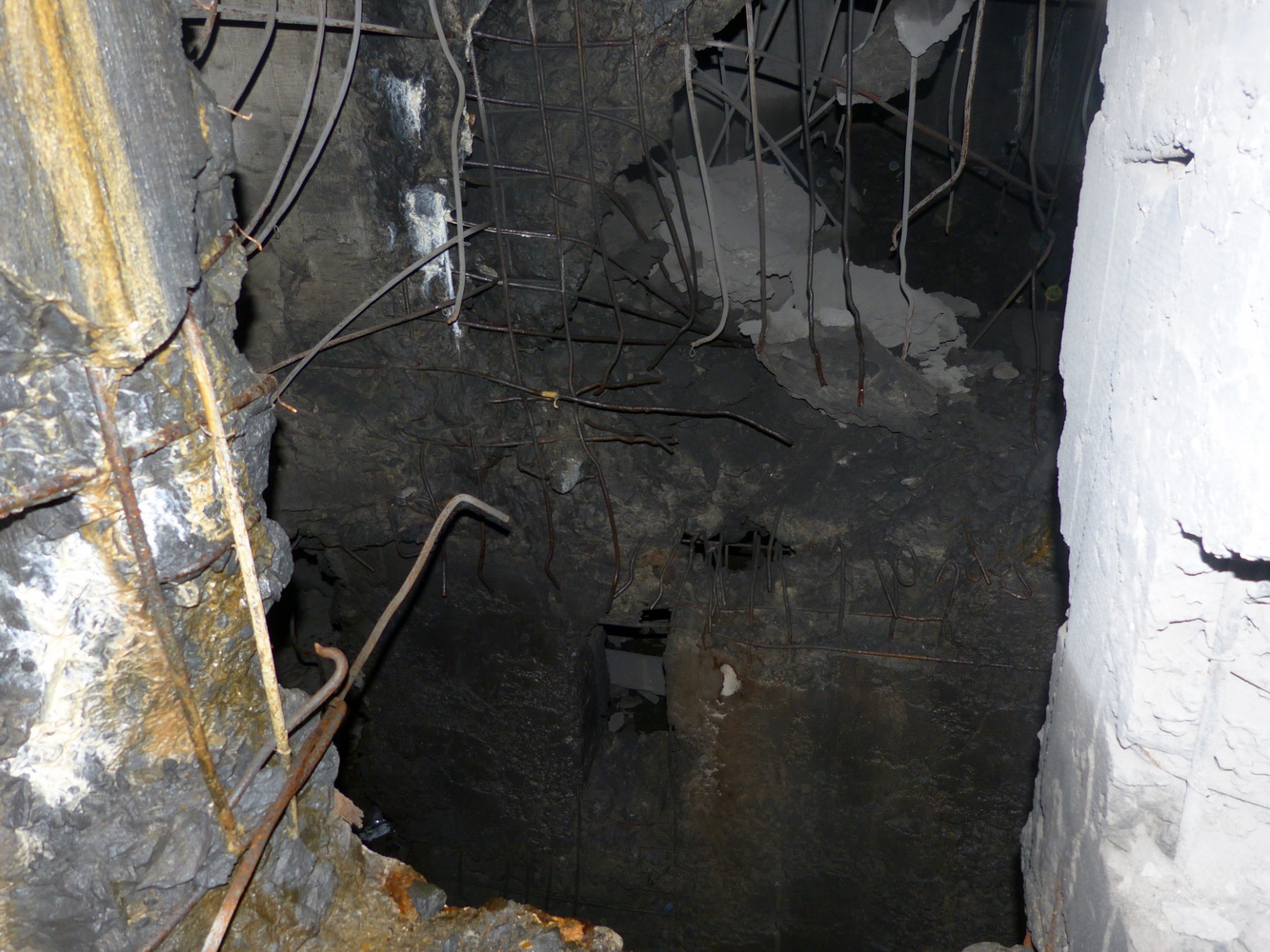 нахрен до самого дна. Пол взорван, внутренности разворочены, везде торчит рваная арматура. Дырень такая здоровая, что фонарь (еле светящий, правда) не достает до дна и до торцевой стены. Что за идиоты!... Не те ли "минеры" случайно, ссылку на которых я давал тремя страницами ранее в этой теме? Если кто полезет туда, то предельная осторожность, что бы кишки на штырь не намотать.