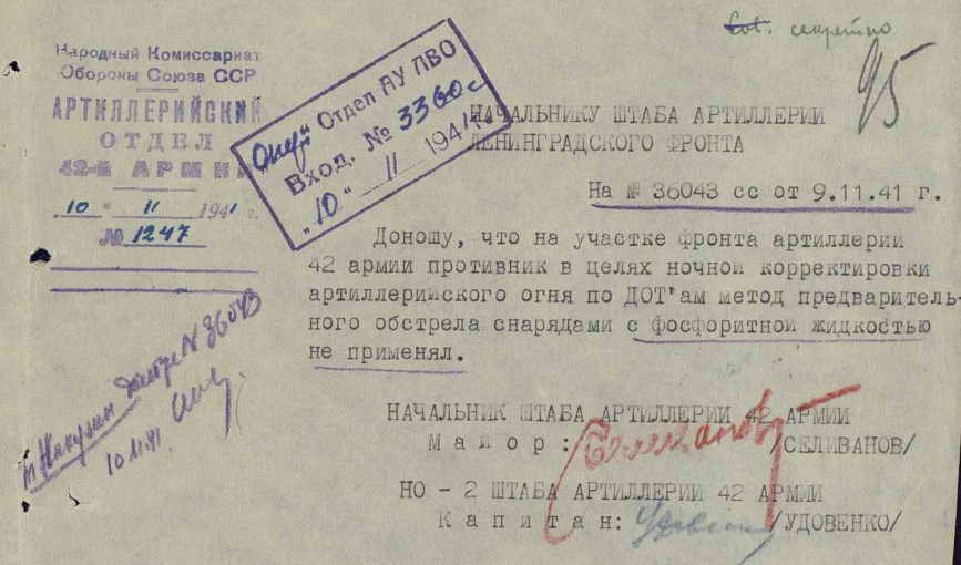 Водном из документов написано, что "Гаубицы оставлены при отступлении" складывается впечатления что идёт речь о четырёх дотах расположиных в ряд на некотором растоянии друг от друга, а позади дотов казарма убежище, каторые находятся по пути к кардону Калелова с лева от дороги В них находились полевые арудия гаубица-пушка МЛ-20 калибр 152,4мм., образца 1937года, вес орудия 7 тон.