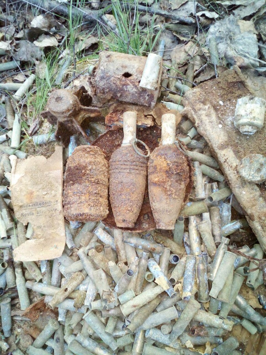 По одним и тем же местам ходишь - тут коробки с патронами вылезут, тут минометные выстрелы, да, все нужно класть на видное место и под деревья, чтобы пешеходы-грибники ненароком не наступили.