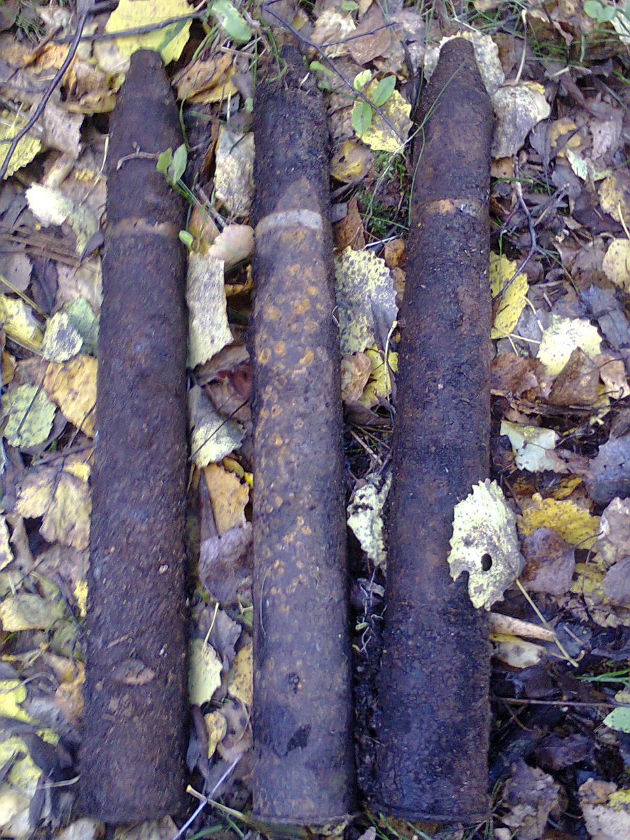 30м от пляжа на Пасторском озере,(там где ручей вытекает,ближе к гаишному садоводству3 целых 45мм осколочных советских снаряда лежали до этой осени прямо на земле, рядом была небольшая ямка(видимо кто то нашёл и оставил).Но добрые люди,(кому это не безразлично) выкинули их в озеро, выкинули далеко от берега (теперь думаю это эхо войны навсегда утонуло в водах Пасторского озера) Если найдёте такое же, лучше обойдите и не трогайте, если уверены в себе и есть знания на эту тему, то возьмите аккуратно и утопите или закапайте. Те ,кто должен такие вещи утилизировать, из за одного предмета вряд ли приедут,(это знаю по своему опыту)так что и эти "проблемы"решать нам самим,на государство тут не приходиться рассчитывать.