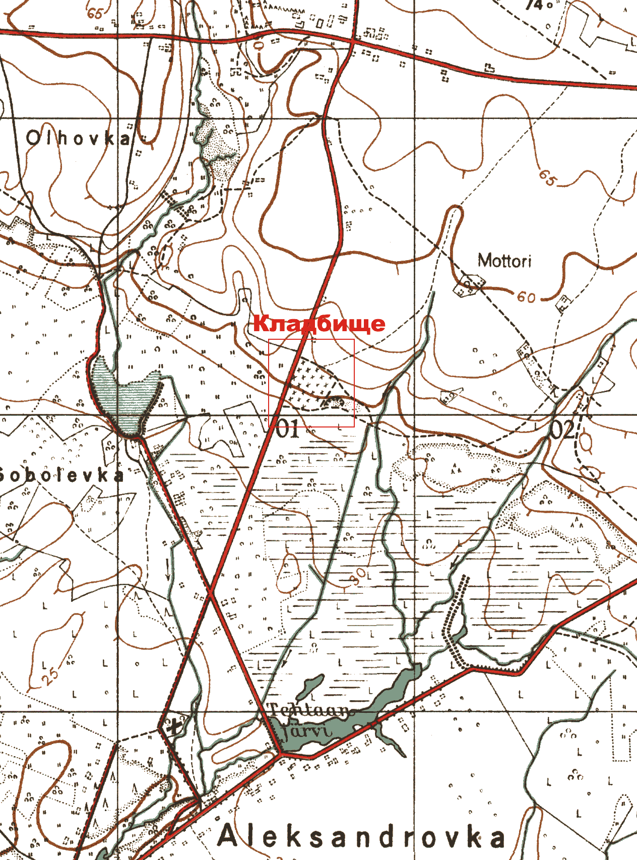 ДОТ по тропинке на танкодром к вышке. Это вдоль 2-го озера, за садоводством"Скорой помощи", за газопровод. Далее шла развилка(сейчас там могила неизвестного солдата). Налево через ручеек в горке- пулеметное гнездо.(Сейчас на нем дом.), прямо- к Медному озеру, а направо вдоль вала с эскарпом на танкодром. мимо ДОТа. Что интересно- на втором этаже какие-то провода уходили в землю, а дальше метрах в 100,при переходе через ручей со стороны ДОТа шла стальная труба диаметром 300 мм. в направлении на "вышку"