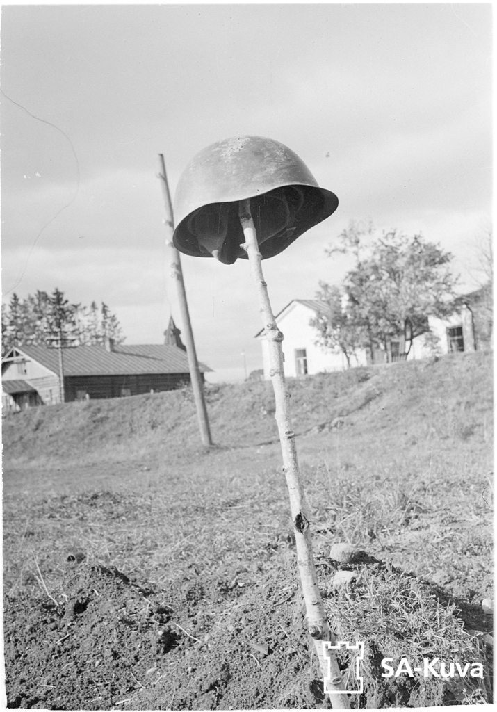 Подпись к снимку: "Могила русского солдата. Белоостров" Снято 19.09.1941. Справа видны те самые "казармы", а слева из-за дома виден шпиль белоостровской кирки.