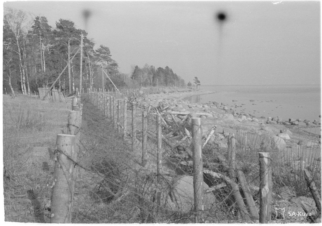 Не очень понял, что такое "рогатки для пушек"Заросшая травой, давно заброшенная дорога выводит на приморское шоссе. Высокие сосны и березы спускаются здесь почти к самому заливу. С шумом катит на песчаный берег свои волны суровая Балтика. Весь берег оплетен колючей проволокой, завален рогатками для пушек. Финны боялись высадки наших десантов со стороны залива и подготовили линию обороны вдоль берега.