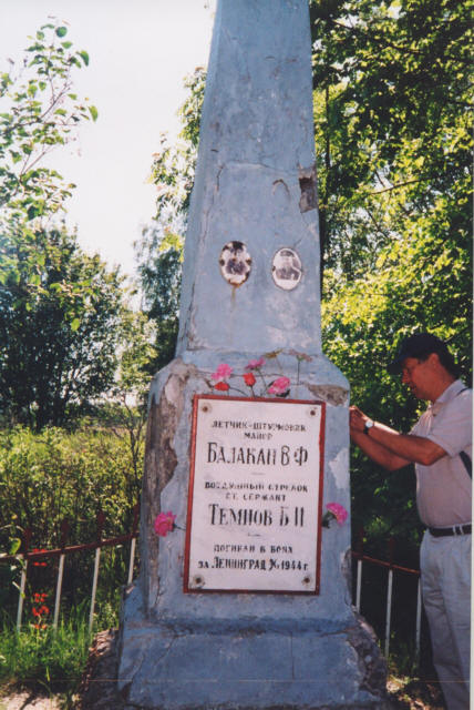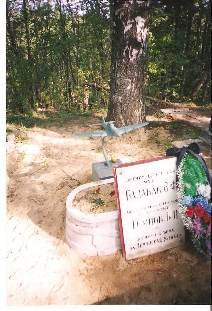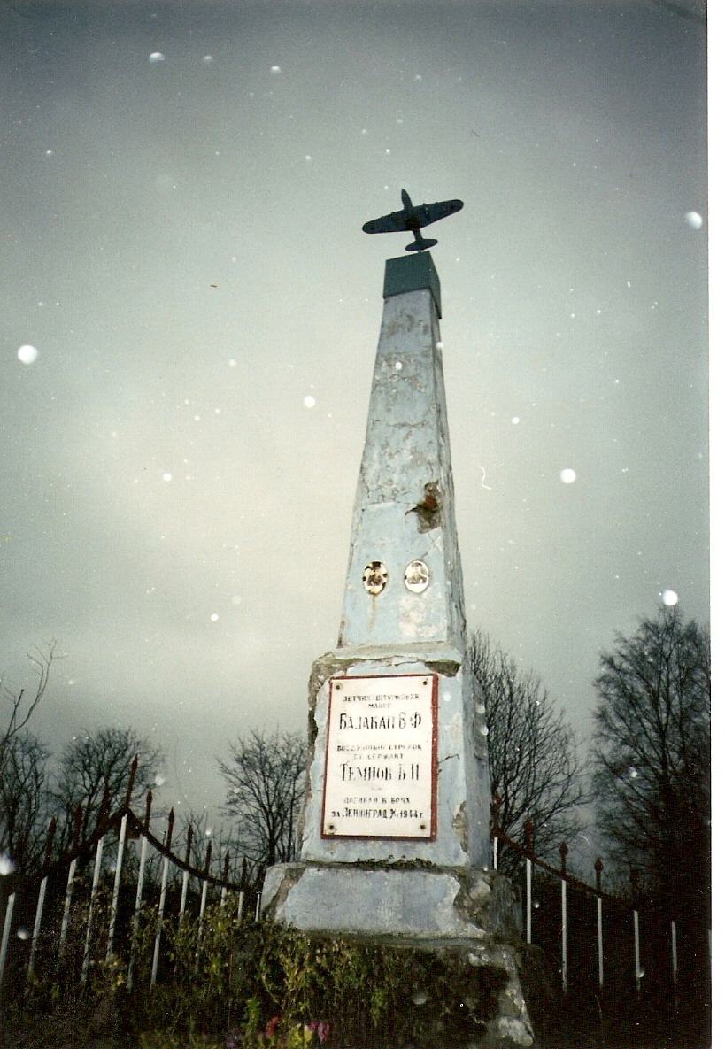 Мы в детстве часто проводили время возле этого памятника. Там стояли скамейка и стол из больших брёвен-из таких,как "пеньки". Поставлены были в одно время. Ну,выпивали,бывало,каждый раз наливая и лётчикам.Но не позволяли себе такого,что сотворили следующие поколения! В 90-х памятник камнями разбили подростки-отморозки. Больше досталось Темнову. Были и поганые надписи-я их замазал краской. Потом произошло вообще такое мерзопакостное,что когда я узнал,то... Не передать словами,что я испытал тогда! Честно говоря-хотел пойти и просто прибить эту сволочь!!! У нас в "Кр. Выборжце" прирезали участок.Какой-то нач.цеха. Кто ещё работал на заводе-"пресмыкались" перед ним.Когда сдохла его собака,он не придумал ничего лучше,как похоронить её вплотную к ограде памятника(сзади)!!! Потом,пьяная скотина, салютовал из ружья и плакал! На общем собрании садоводов,особенно старики(кто ещё был жив) проклинали его и грозились сжечь! И что бы он убирался из садоводства! Потом он дом продал и теперь где-то на 36-37 км. обитает. Дом этот все видели-метров 150 от глав.перекрёстка по озёрному шоссе.Справа трансформатор,а за ним большой белый каменный дом.Там сейчас другие люди. А уехал он после того,как собаку ночью через забор к нему вернули!!!