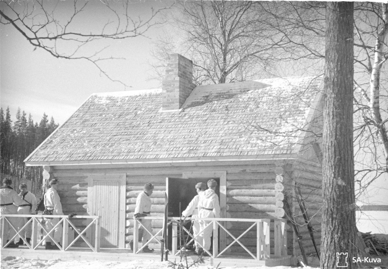 Приветствую уважаемых коллег! Хочу предложить небольшой обзорчик. Посвящен он будет расположению штаба 18 пехотной дивизии финнов. Генерал-майор Паяри выбрал место для своего штаба на берегу озера Каукъярви, нынче известное как Большое Симагинское, или просто Красавица. Первые фото, что я обнаружил в архиве, относятся к 7 марта 1942 года. К Паяри прибывает делегация финских генералов во главе с генерал-лейтенантом Х. Эквистом. В то время он был командиром IV Армейского корпуса ( или уже опергруппы «Карельскиий перешеек» ?- везде по-разному пишут. Но не суть важно). С Эквистом прибыл чел, похожий на представителя Генштаба генерал-майора Айро ( а м.б. я путаю). Штабной домик совсем новый. Бревнышки и досочки белые и свежеструганные.