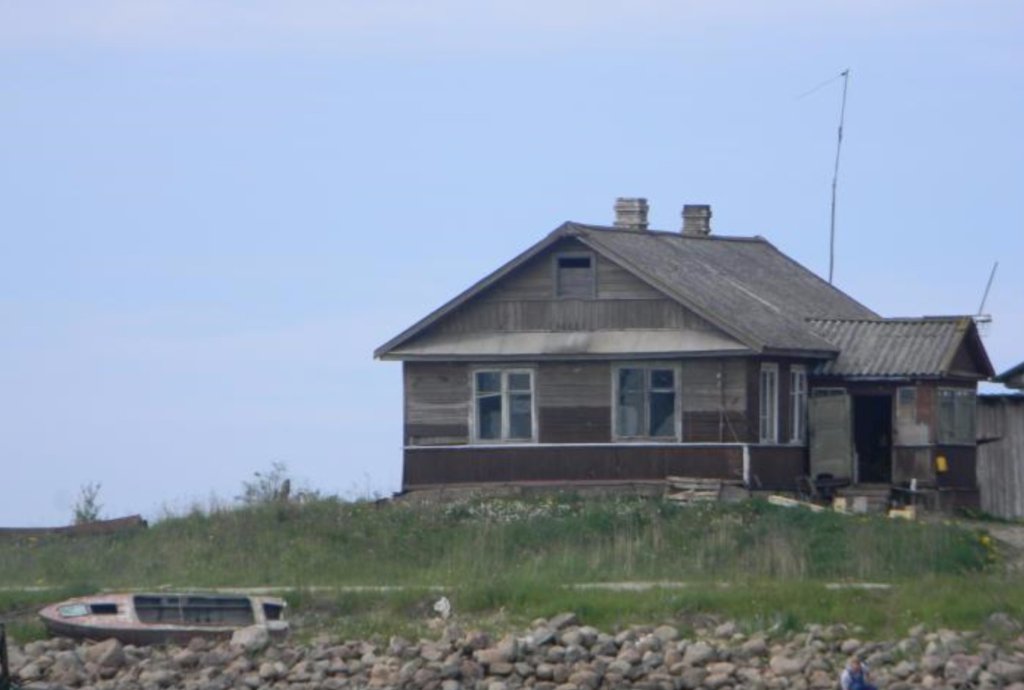 В викимапии сказано, что домик участвовал в съемках фильма "Баллада о Беринге и его друзьях" 1970г. Точно. Его обшили старыми досками для антуража. Кино есть в ютьюбе. Начало темы с домиком на 38 минуте, а непосредственно он в кадр попадает на 41.32. Когда камера смотрит "в море", там всегда виден мол с длинным заходом вправо, как и на некоторых других фото из Сойкино. Вероятно, домик перестраивался, т.к. немного не совпадают пропорции. Ну, уже такое было с огромным домом в Сортавала