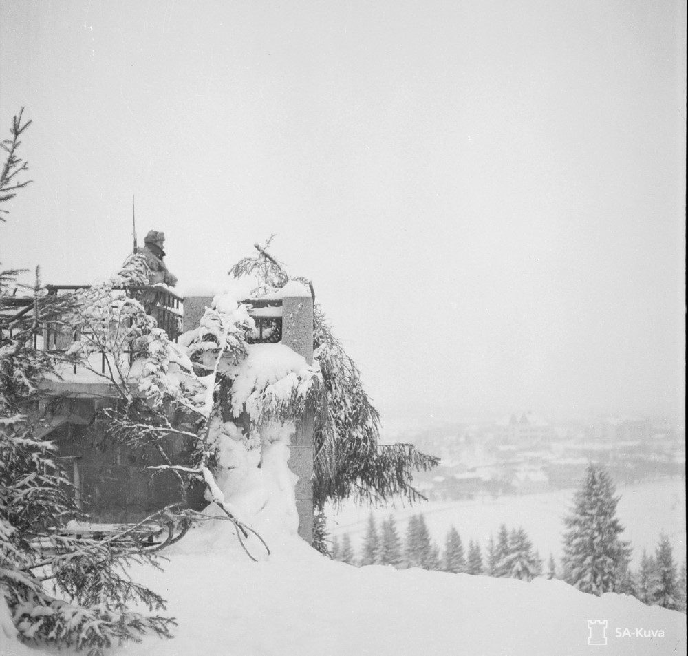 58-59 Наблюдатель-часовой на посту в Зимнюю войну в январе 1940 года. А вообще это бетонное сооружение - простая водокачка на макушке горы