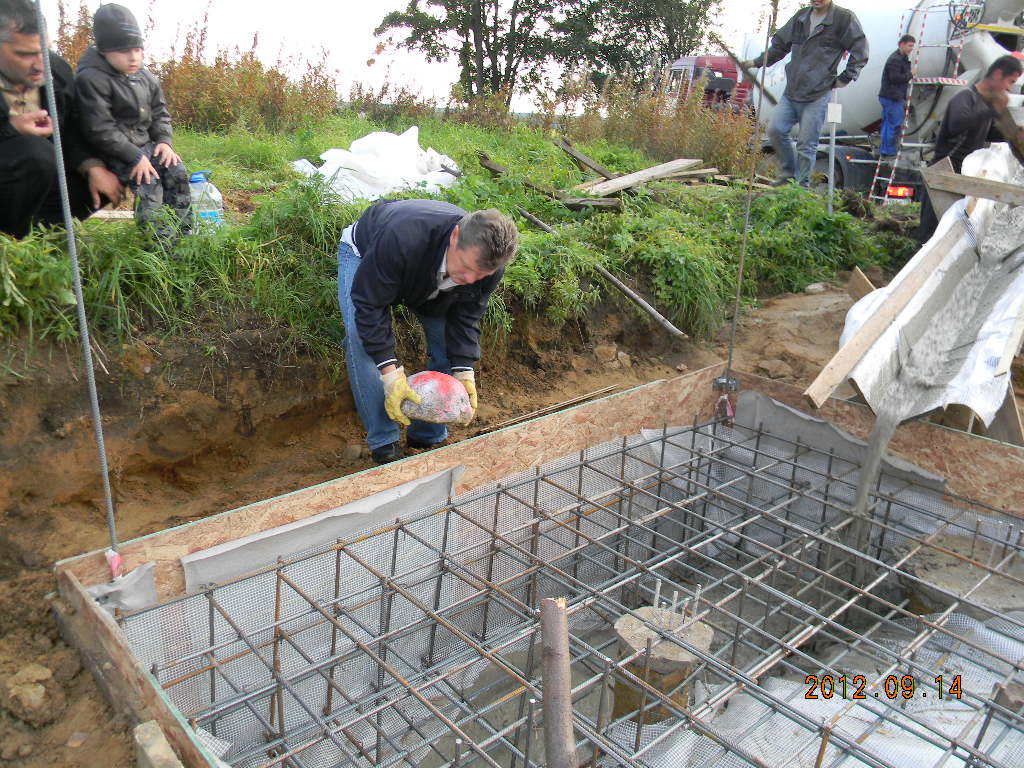 Заливка бетона в заключительной фазе.