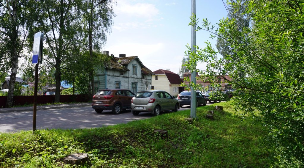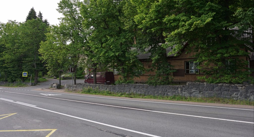 Есть в архиве такая фотография под номером 34784. Еще в прошлом году, когда я "ездил" по Сортавала на картах гугл, я ничего подобного не смог обнаружить. Длинный ряд деревянных домов без промежутков между ними и рядом маленький каменный. Ну, ладно - деревянные дома еще могли сгореть, но каменный-то должен сохраниться. В прошлом году ответа на загадку не нашел ( как, впрочем, я еще один дом "потерял". А он больше этого раза в два. Но на картах я его все-таки обнаружил. Вот ну ни разу по той улице не проехал, а он там и оказался