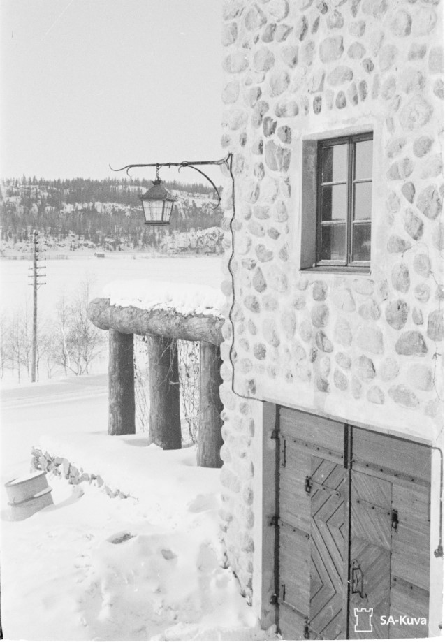 ) Да и в этом при поездке я опять ничего не нашел. Только разбирая фотографии поездки и готовя материал решил перевести подпись к фото. Гугл перевел так - "Народный дом на углу западной железной дороги 13.8.1941". Ага, думаю, - район поисков немного сузился до южной части Сортавала. Там вокзал и т.д. Но опять, проехав по всему Кумюля, не обнаружил тот каменный дом. Основные зацепки видны - два этажа, на втором этаже три окна, под каждым окном кругляшки для красоты, на первом этаже две двери и три витринных стекла. Номер дома при увеличении фото - вроде бы 11.