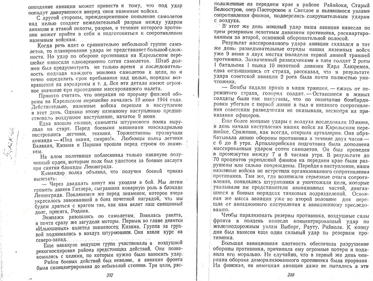 Посмотрел книгу маршала Авиации Новикова http://victory.mil.ru/lib/books/memo/no ... index.html, главу "Разгром Карельского вала". Но этот эпизод из другой книги.краевед эксперт писал(а):Сделал копии 2 страниц из книги, но не записал из какой. На странице 232 упоминается последний день жизни Балакана - 9 июня 1944г.